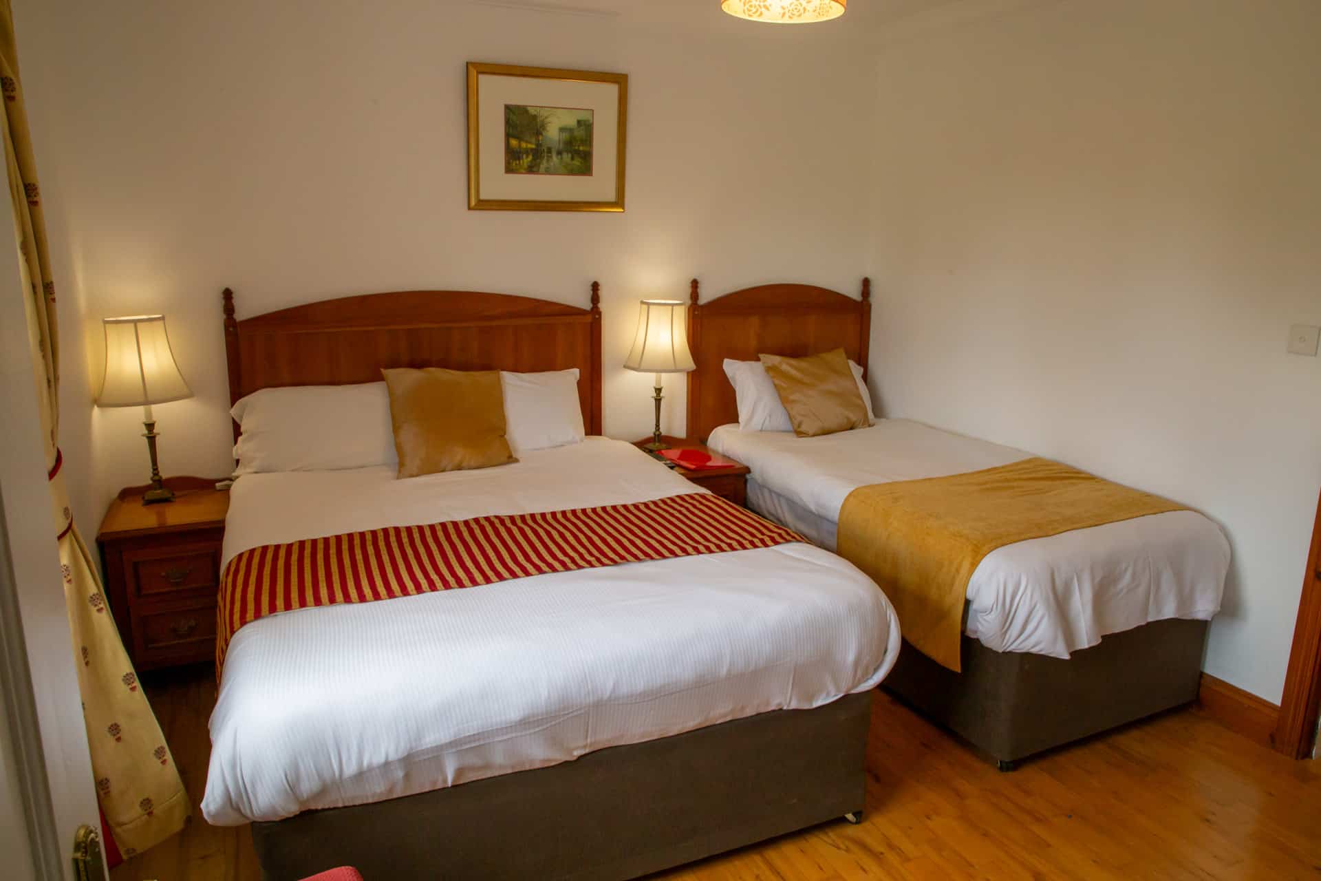 All our spacious rooms have en-suite facilities with power showers, and feature a flat screen TV, wardrobe, hairdryer, full length mirror, safe, free bottled water, and free toiletries. Some rooms have walk-in wardrobes, desks, and dinning areas. All rooms have free Wifi.